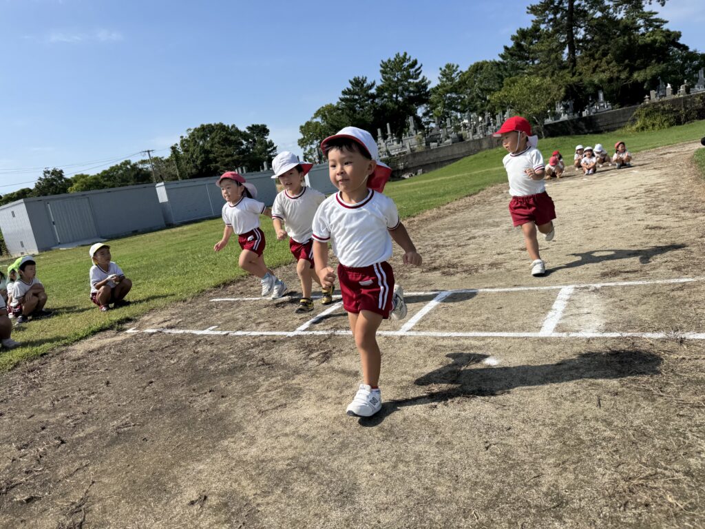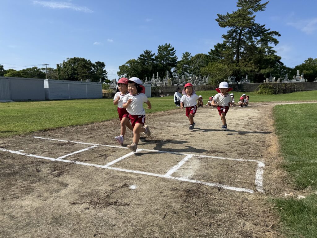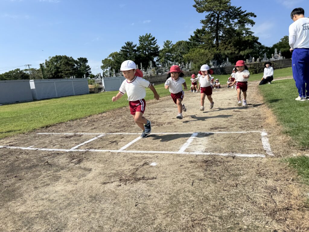 運動会を週末に控え、全体練習の後はかけっこをしていました。