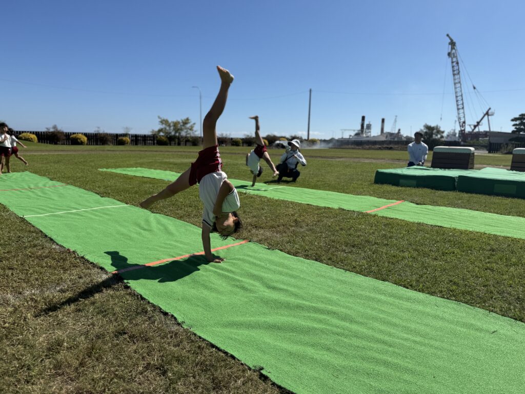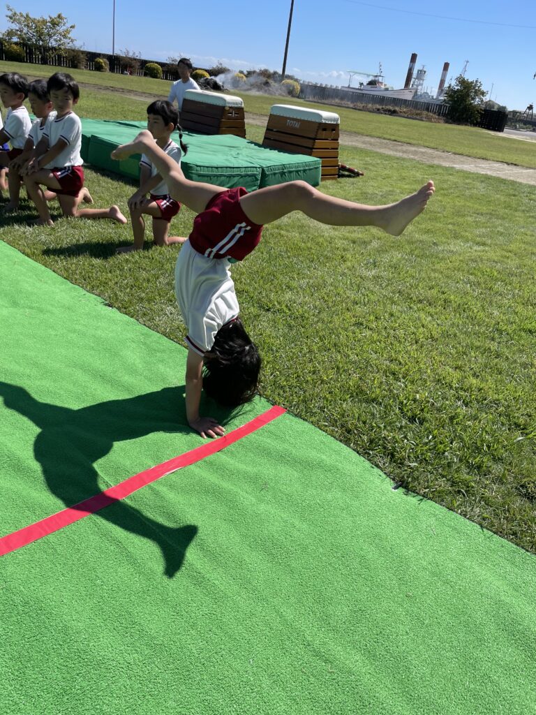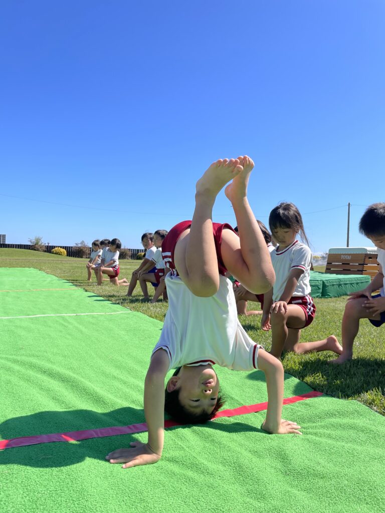 三点倒立からの逆立ち歩きにチャレンジ!