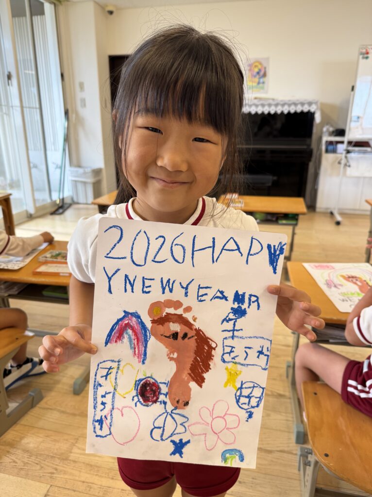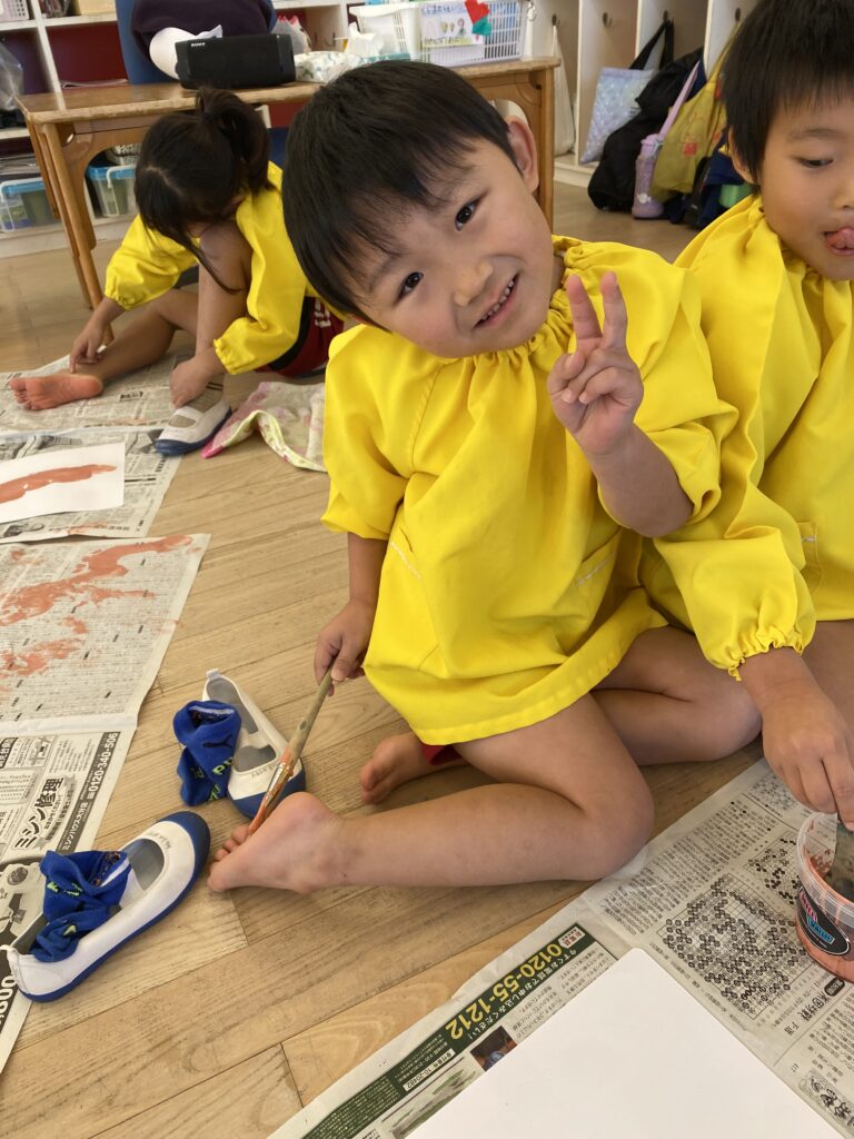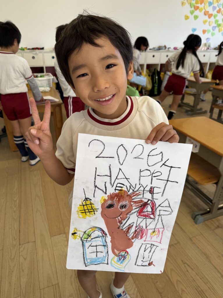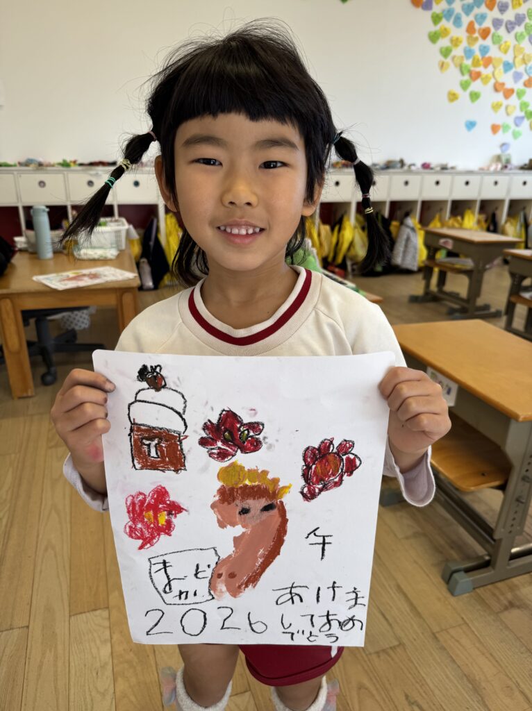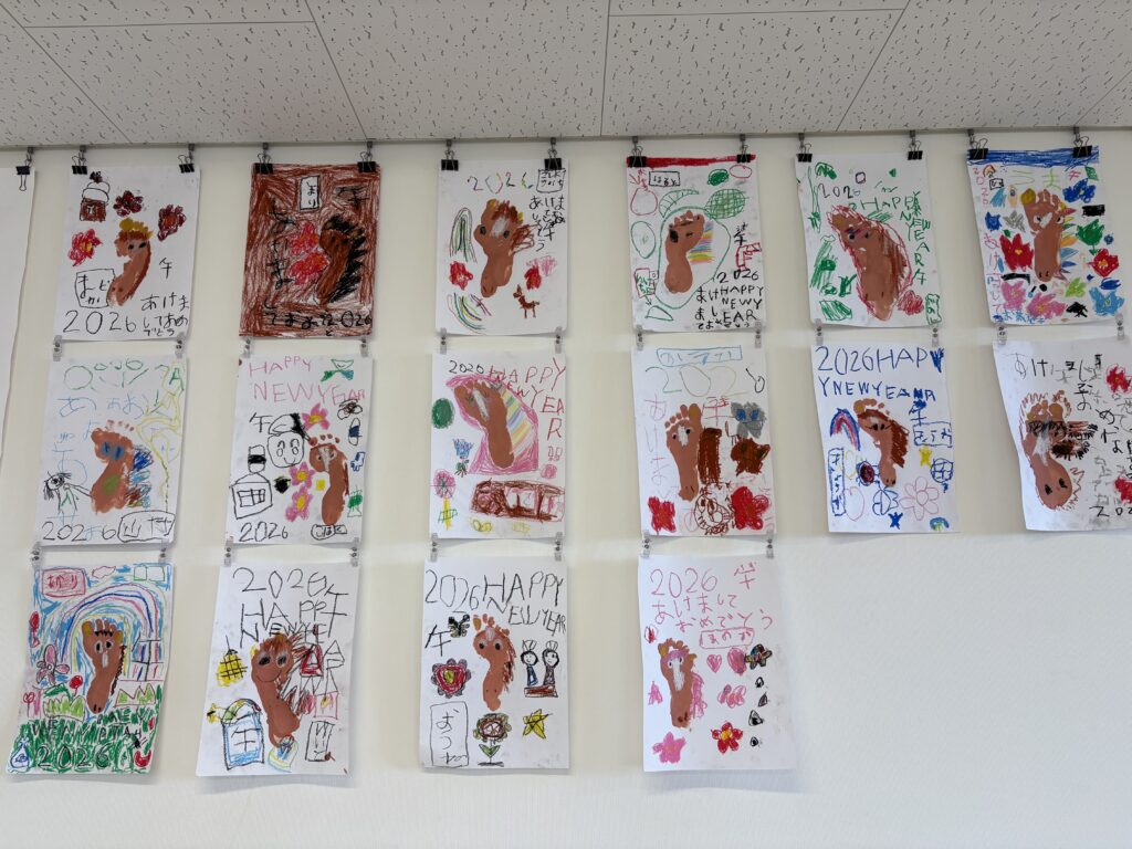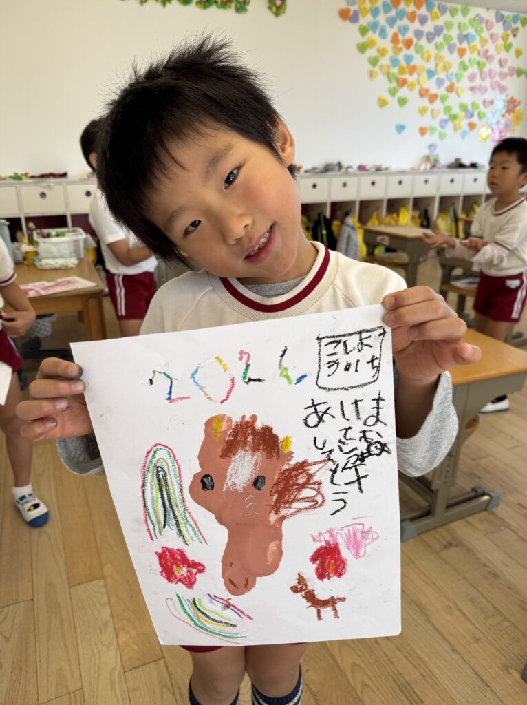 これは昨年末、梅組さんの年賀状作りの様子です😊