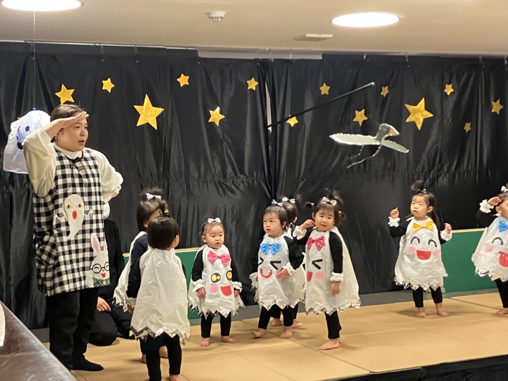手遊びの次はマラカスのおもちゃで「おばけ👻のチャチャチャ」を張り切ってました👍
