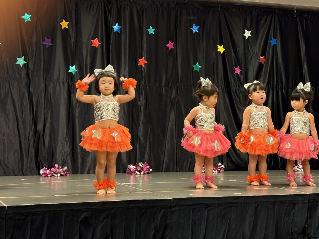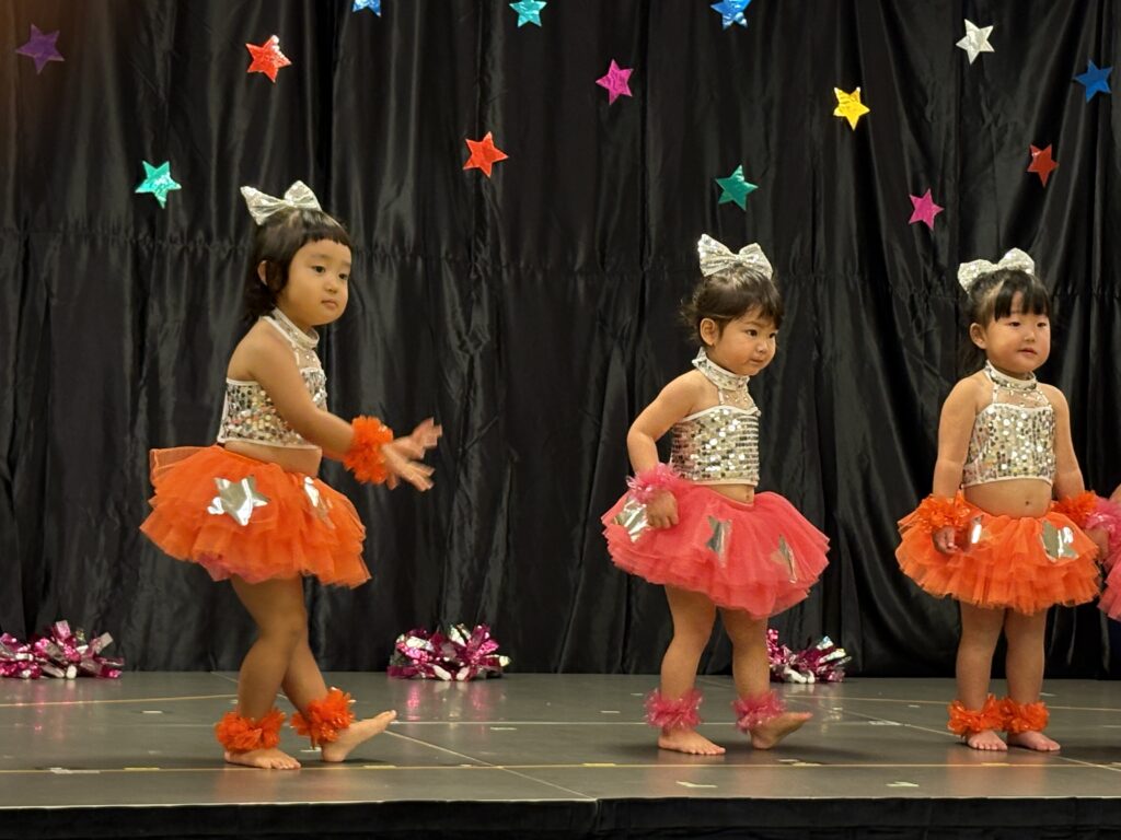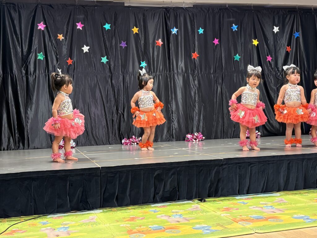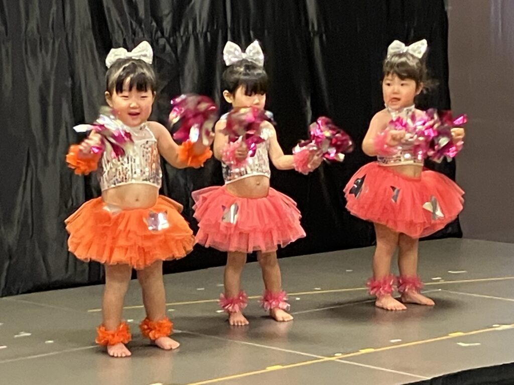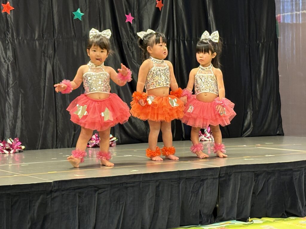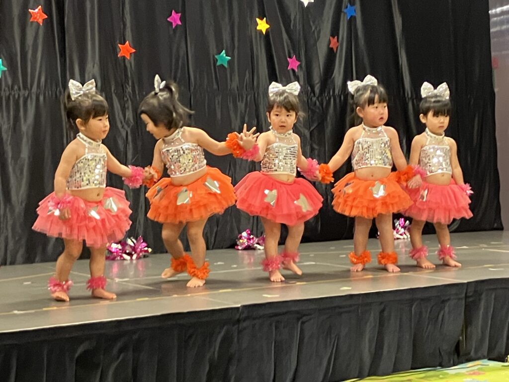 2歳児さんにはちょっと難しい移動もありましたが、自分の立ち位置をしっかり覚えて踊っている姿に