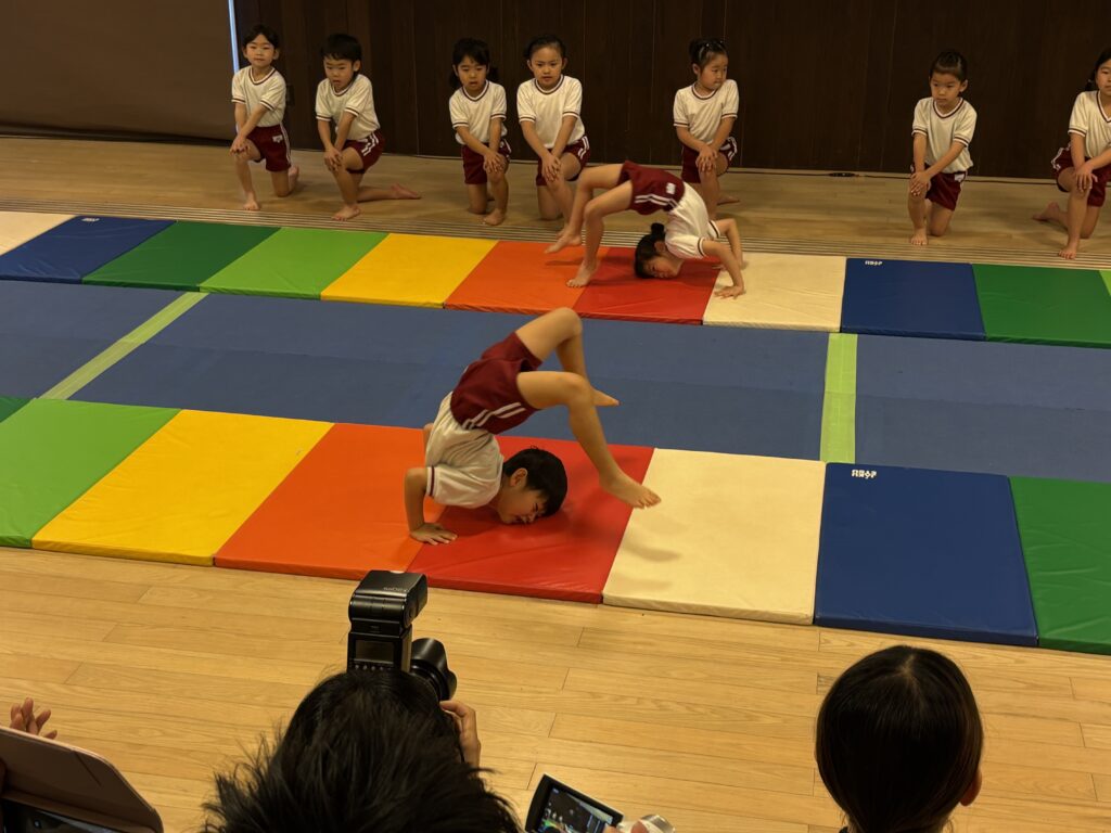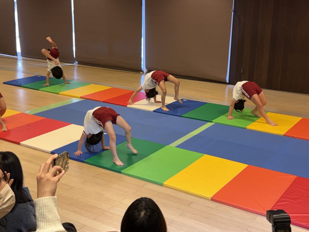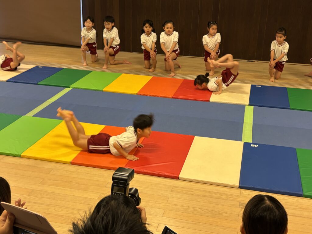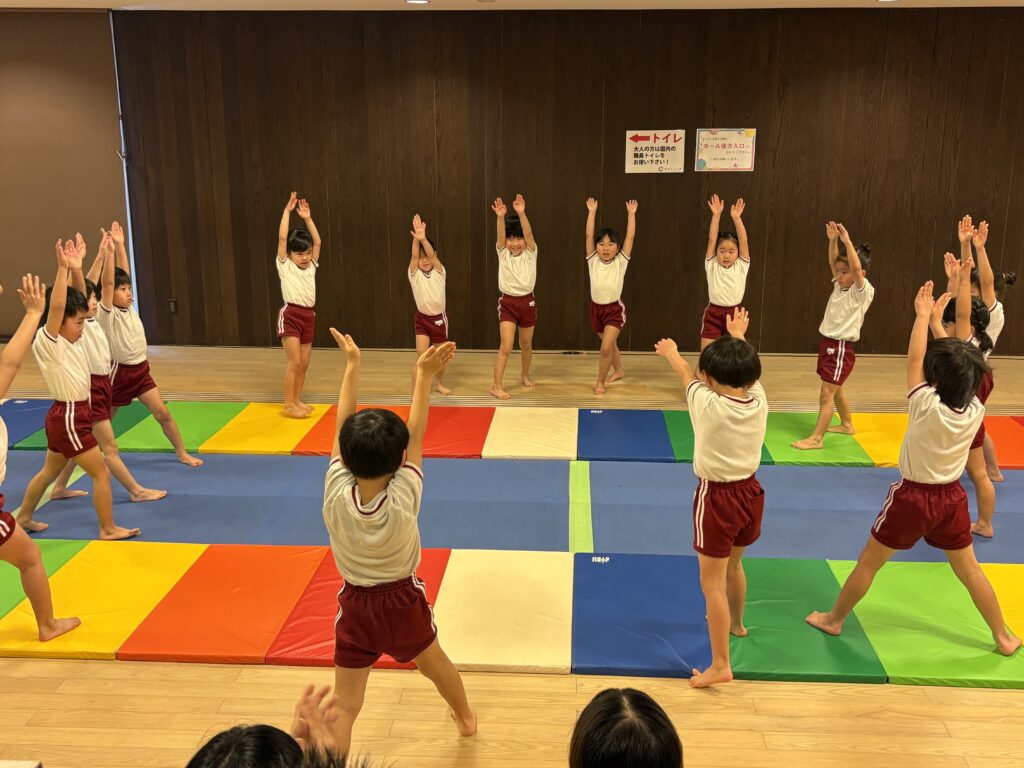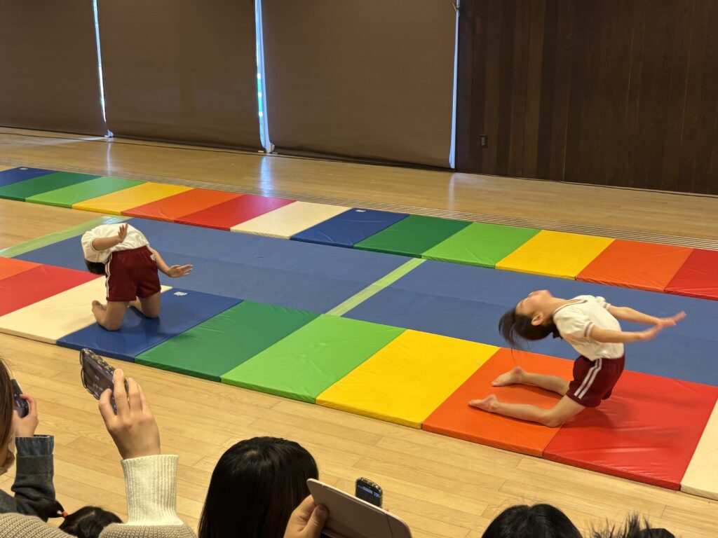 2/21(土)以上児クラスの発表会、桃組さんの体操の様子です。