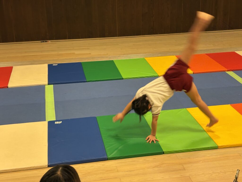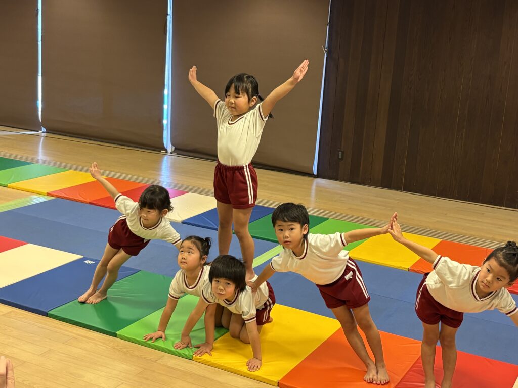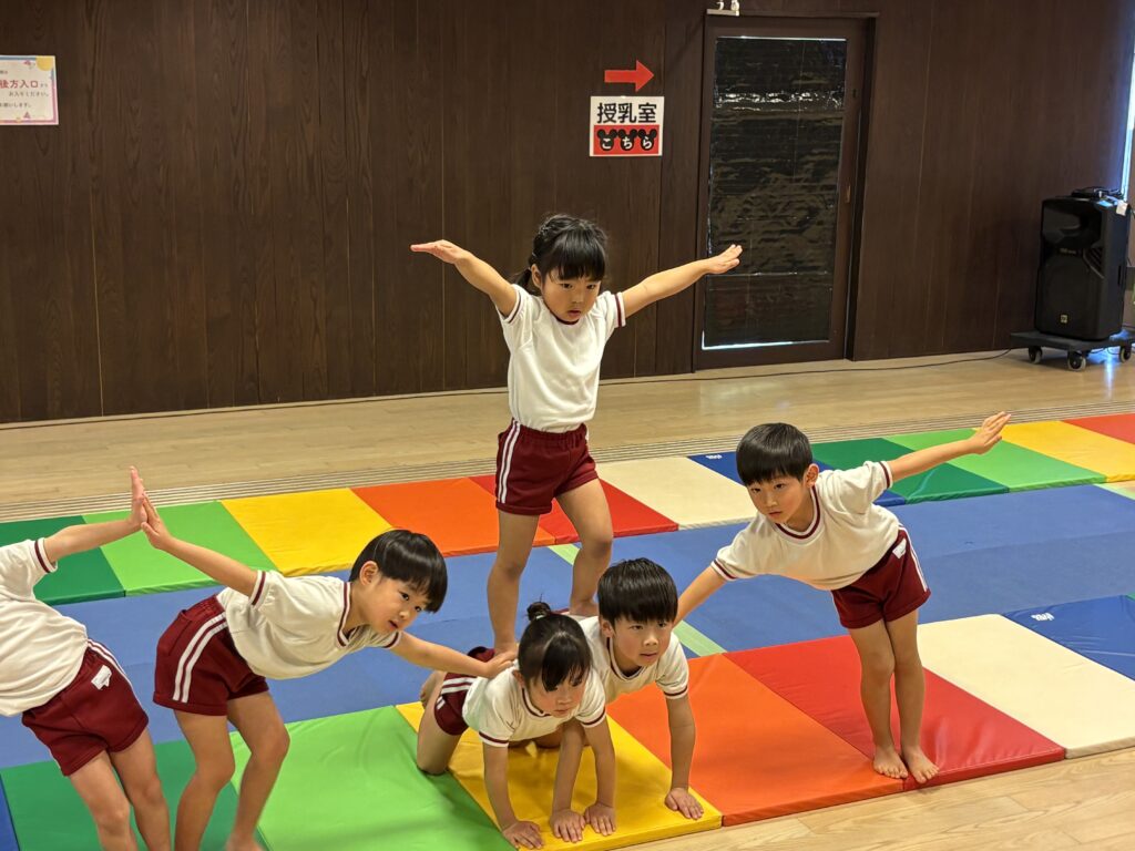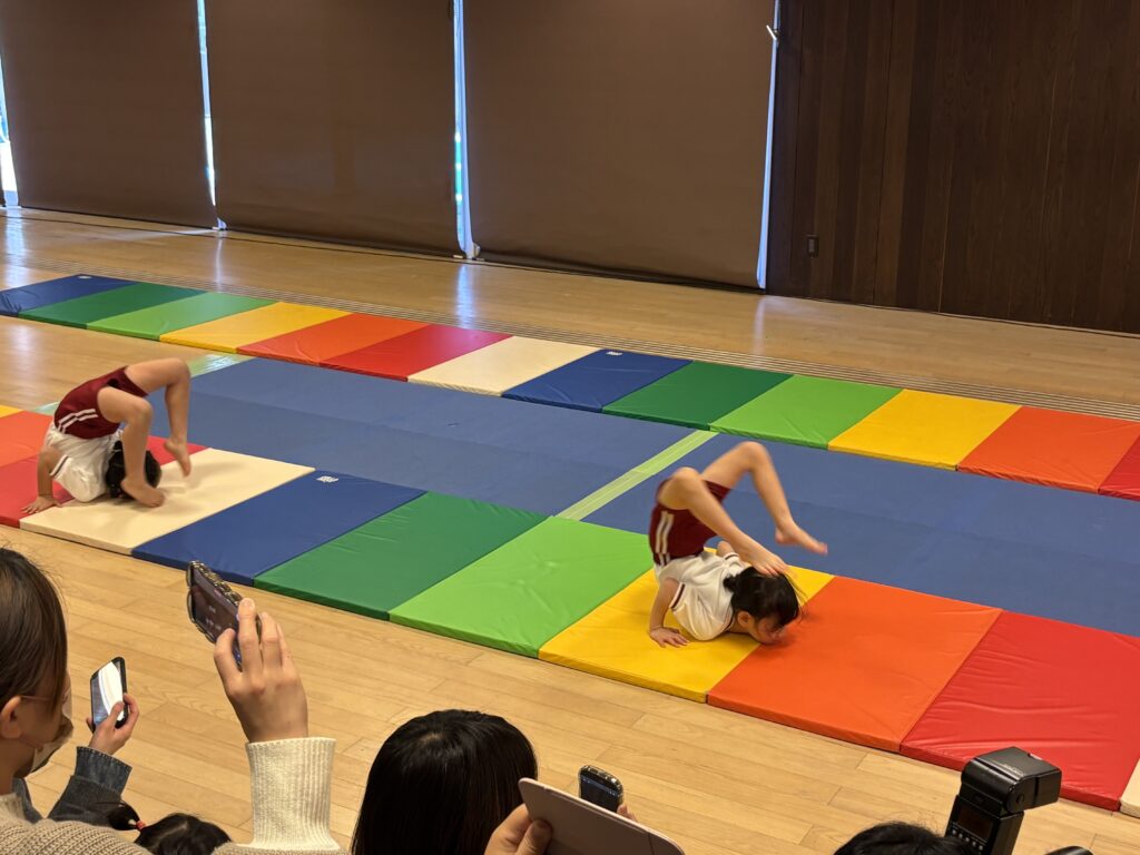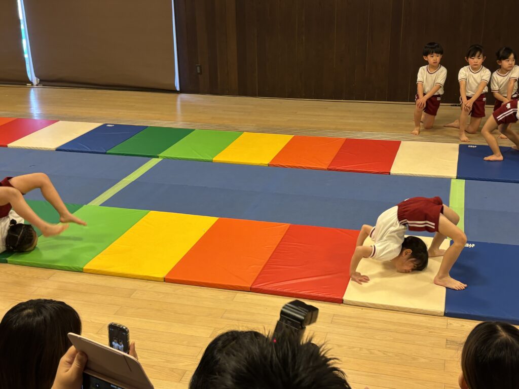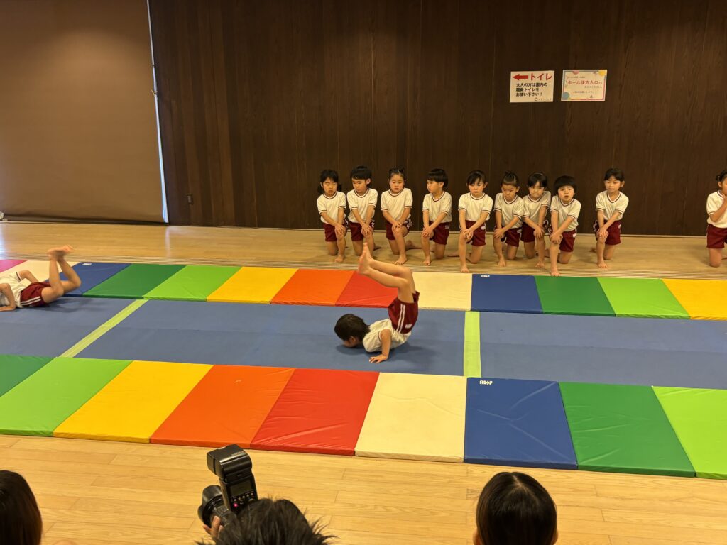 2/21(土)以上児クラスの発表会、桃組さんの体操の様子です。